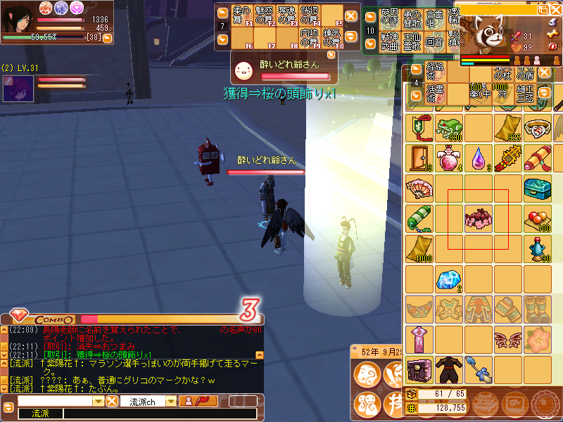 さて、大梁クエストの内容を知らないものだからNPCに話を聞くと、あれを80匹倒せ、コレを100匹倒せと、数がべらぼうに多い…大梁にいる妖魔相手だからレベルの差も激しいし…元々60レベルの職業で手をつけて正解だった(笑)…レベル上げしてる方には迷惑だったかも知れないですが…レベル上げしてた方、すみません。m(_ _)m